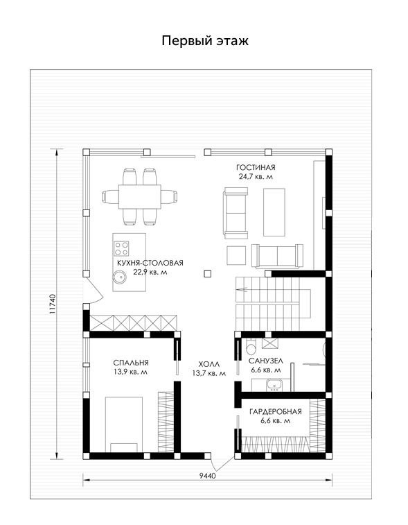 Уникальность фахверковых домов в том, что несущий каркас из клееной древесины можно «нарастить» в длину кратно 2,6 м, тем самым увеличить полезную площадь дома. Фахверковый дом можно менять и внешне, например, варьируя площадь остекления. Подобная легкость и творческая свобода в создании собственного дома – уникальная особенность проектов этой серии.